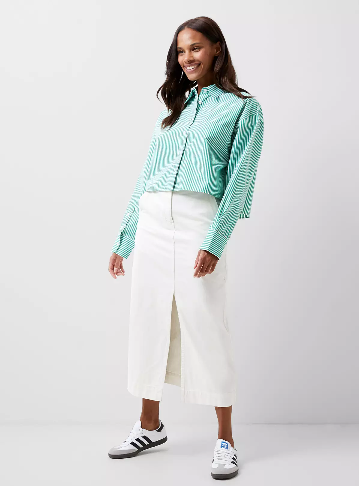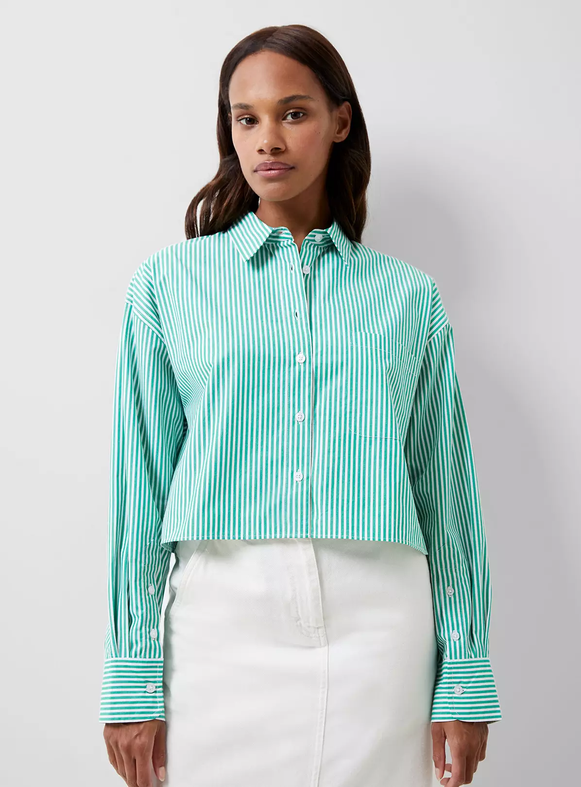 Our Alissia Stripe Cropped Shirt is a cut above the rest. From classic stripes in contrasting hues to a cropped length, this shirt breaks the barrier between traditional and trending, complete with a collar, value-through fastening and handy breast pocket.
