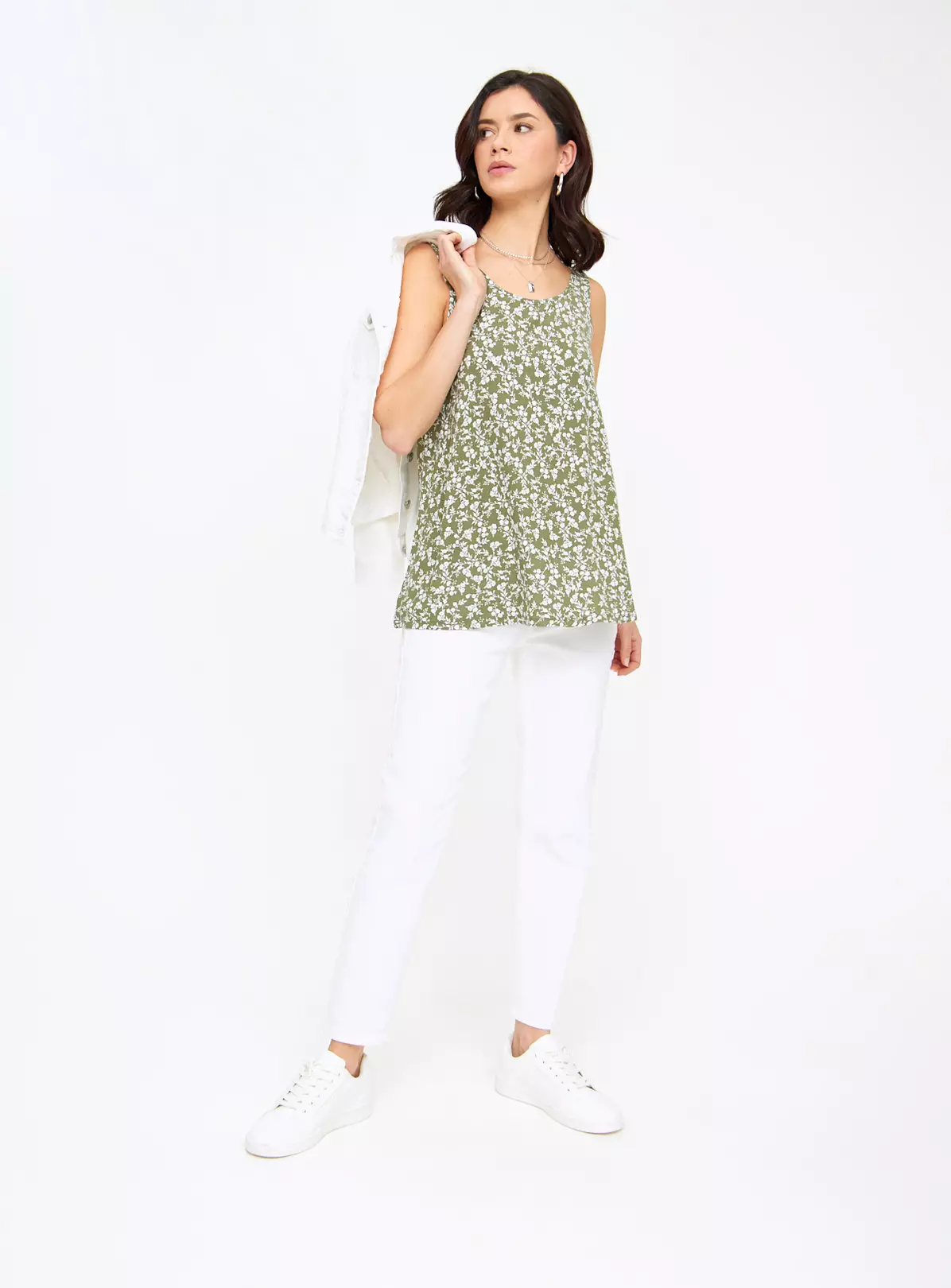 Stock up on some on-season staples with our scoop front vest top. In an uber soft jersey, it’s stretchy and swingy in a summer ready khaki ditsy print.