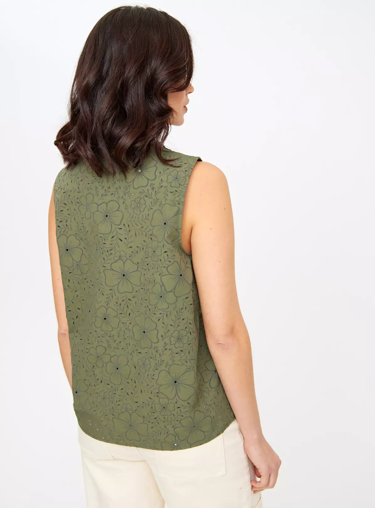 Khaki and white is always a winner for summer, and our floral top will definitely set off your denim jeans. Sleeveless, with cuts outs and value through, it’s a chic staple, perfect for your next ladies’ lunch.