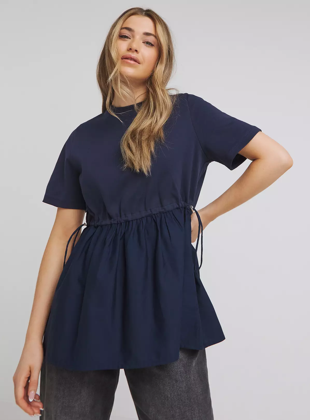 The perfect addition to your everyday wardrobe this season! This blouse features an adjustable drawstring at the waist which looks really flattering on and is available in two colours, white and navy. Simply pair with jeans and trainers for a cute effortless everyday look!