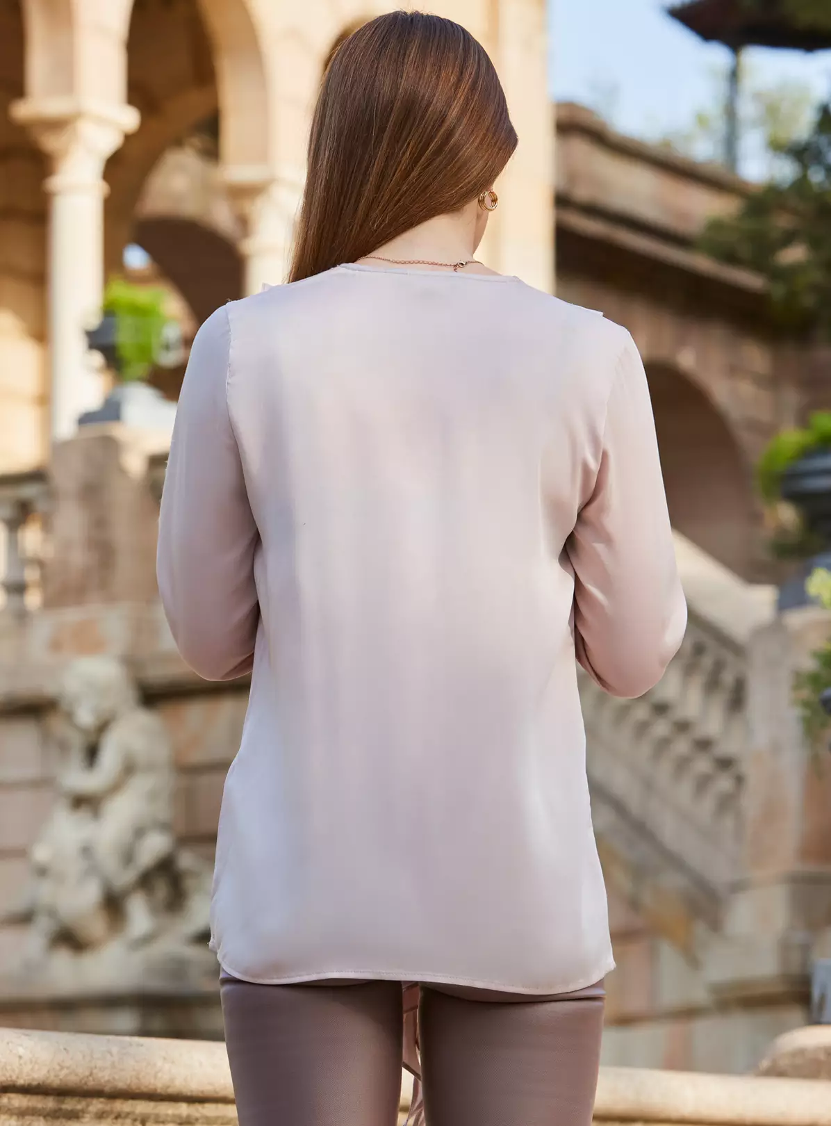 Treat your jeans and trousers, spun from the softest satin fabric, drapes softly over your body, ultra-feminine ruffle trim, tuck into tailored trousers for the office, add jeans or leather trousers for date night.